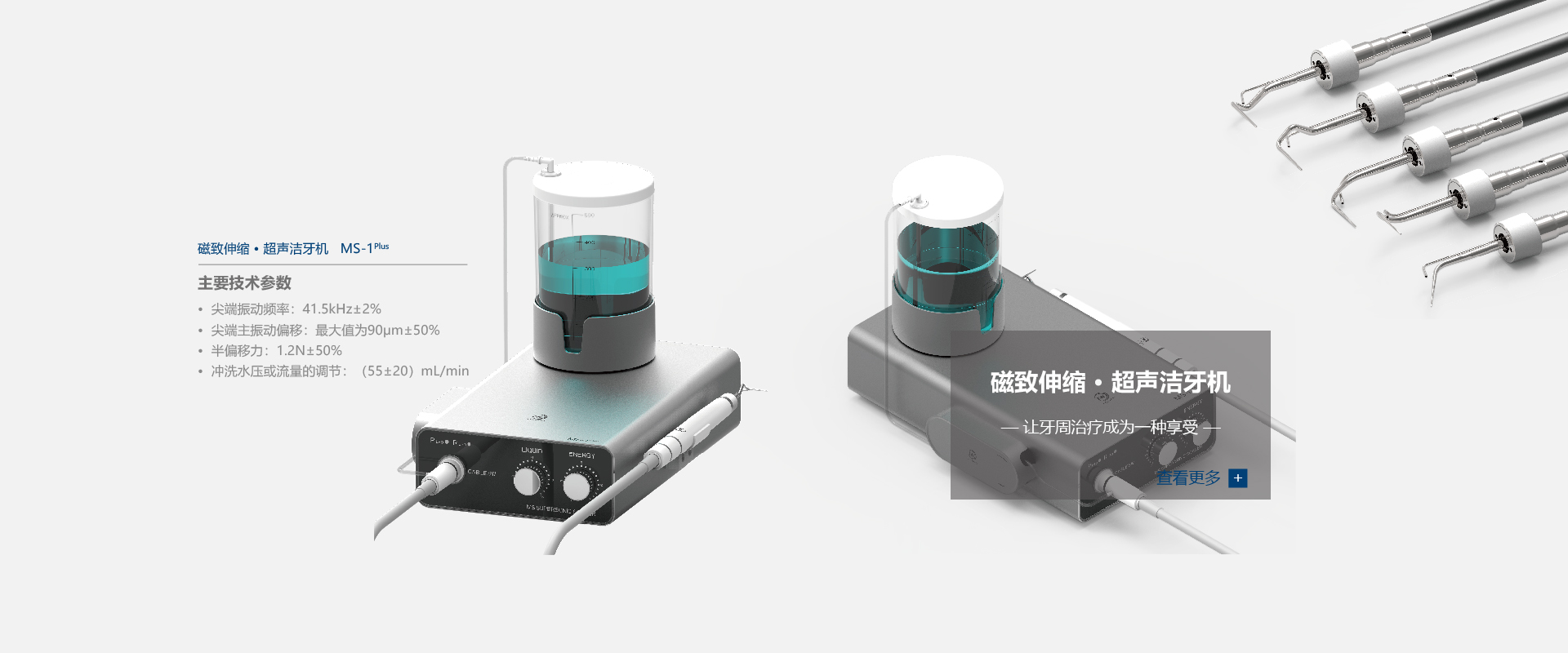 公司致力于磁致伸縮及數(shù)字影像技術(shù)在口腔醫(yī)療器械領(lǐng)域 的應(yīng)用,目前擁有3項(xiàng)發(fā)明專利、5項(xiàng)實(shí)用新型專利和2項(xiàng) 外觀專利。公司當(dāng)前主營產(chǎn)品為牙周治療移動工作站,具 體包括磁致伸縮·超聲潔牙機(jī)、高清晰度·數(shù)字口腔觀察儀 、全向轉(zhuǎn)動·多功能移動醫(yī)療推車及配套耗材。